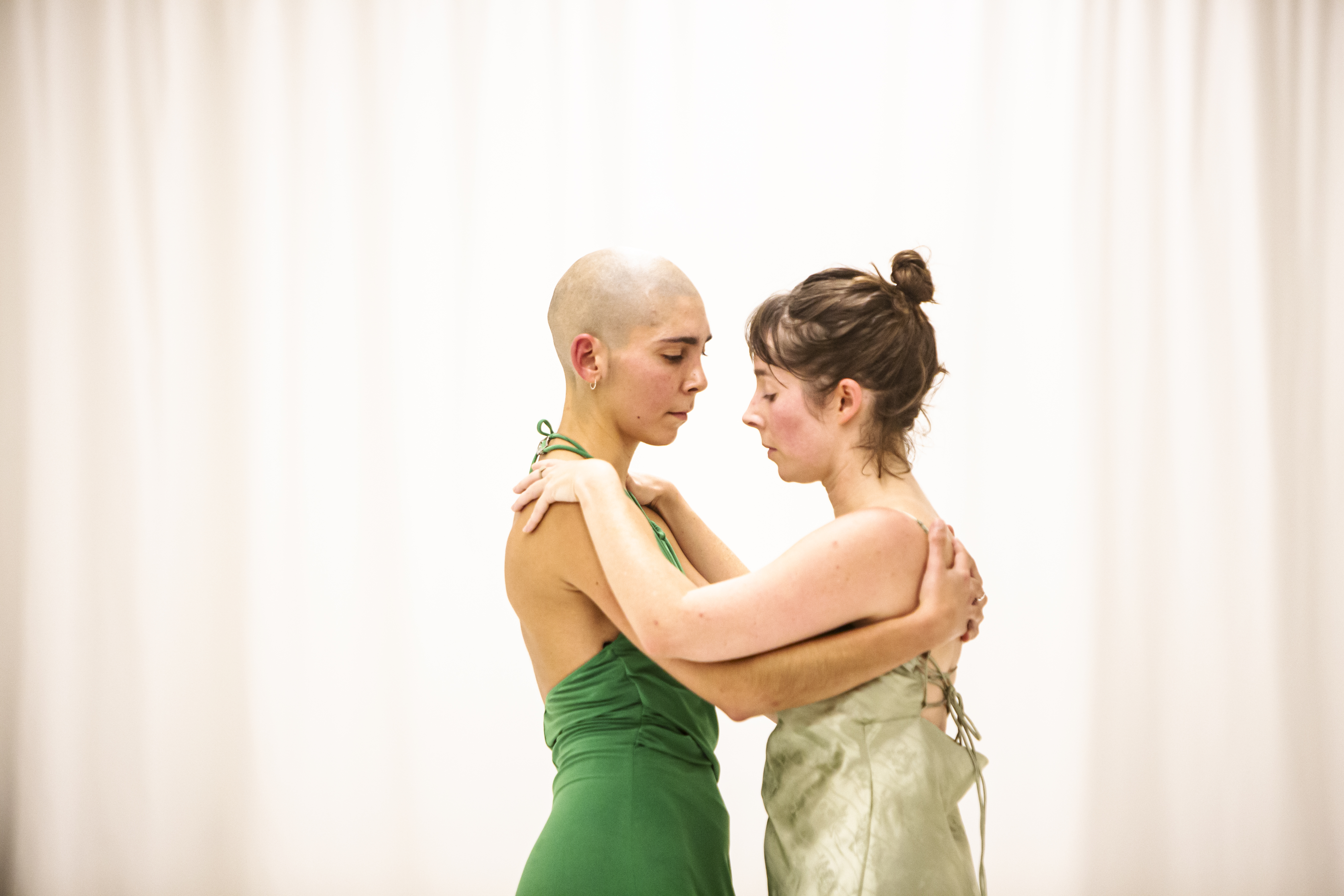 We are developing a duet exploring the concept of “partner dancing”, expanding existing styles to playfully create our own. We have been playing in and out of contact, looping, knotting in slow motion, waltzing together and deconstructing the waltz. Our main questions are: how can we maintain our differences yet insist on dancing together? By sharing this space, are we always in a duet, or can we dance solo in the presence of one another? We are questioning the solo and the duo, both in choreographic and social contexts, to look at the unavoidable interconnection between all people. Inspired by Alice Walker’s provocation, ‘Hard times require furious dancing’.